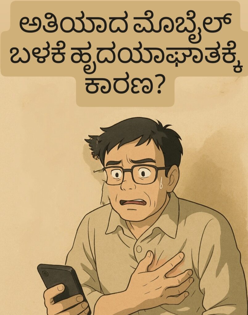 ಇತ್ತೀಚೆಗೆ ಹೊರಬಂದಿರುವ ಒಂದು ವೈದ್ಯಕೀಯ ಅಧ್ಯಯನದಲ್ಲಿ, ದಿನಕ್ಕೆ 6 ಗಂಟೆಗಳಿಗಿಂತ ಹೆಚ್ಚು ಮೊಬೈಲ್ ಬಳಸುವವರು, ತಾವು ಅರಿಯದ ರೀತಿಯಲ್ಲಿ ದೀರ್ಘಕಾಲದ ಒತ್ತಡ (Chronic Stress), ನಿದ್ರಾಭಾವ, ಮತ್ತು ಅನಿಯಮಿತ ಹೃದಯ ಧ್ವನಿ (Arrhythmia) ಗಳಿಗೆ ಒಳಗಾಗುತ್ತಿದ್ದಾರೆ. ಈ ಎಲ್ಲ ಅಂಶಗಳು ಹೃದಯಾಘಾತದ ಪ್ರಮುಖ ಕಾರಣಗಳಾಗಬಹುದೆಂದು ಸ್ಪಷ್ಟವಾಗಿ ಸೂಚಿಸಲಾಗಿದೆ.