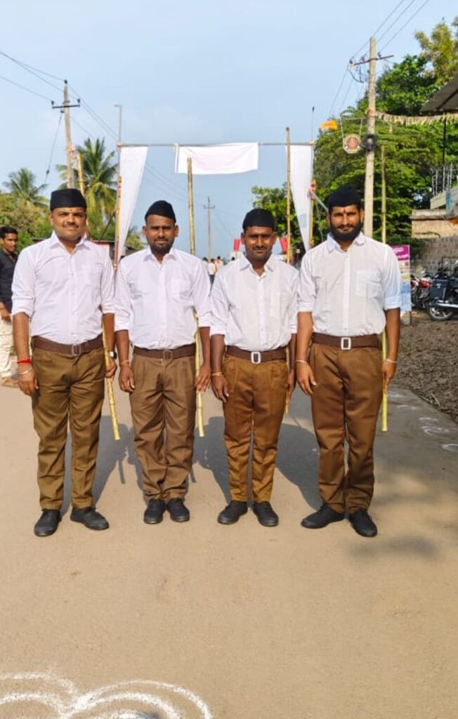 ಸಂಘದ ನಿನಾದಗಳು, ದೇಶಭಕ್ತಿ ಘೋಷಣೆಗಳು ಹಾಗೂ ‘ವಂದೇ ಮಾತರಂ’, ‘ಭಾರತ ಮಾತಾ ಕಿ ಜಯ’ ಎಂಬ ಘೋಷಣೆಯ ಮಧ್ಯೆ ಪಥಸಂಚಲನವು ಗ್ರಾಮಸ್ಥರ ಗಮನ ಸೆಳೆಯಿತು. ಪಿತಾಂಬರ ಧ್ವಜವನ್ನು ಮುಂದಿಟ್ಟು, ಬಿಳಿ ಅಂಗಿ ಮತ್ತು ಖಾಕಿ ಬಣ್ಣದ ನಿಕ್ಕರ್ ಧರಿಸಿದ ಕಾರ್ಯಕರ್ತರು ನಿಗದಿತ ಪಥದ ಮೂಲಕ ಹೆಜ್ಜೆ ಹಾಕಿದರು. ಪಥಸಂಚಲನದ ಮುಖ್ಯ ಉದ್ದೇಶ ಶಿಸ್ತಿನ ಬೋಧನೆ, ಸಾಮಾಜಿಕ ಜಾಗೃತಿ ಮತ್ತು ರಾಷ್ಟ್ರ ಸೇವಾ ಚಟುವಟಿಕೆಗಳ ಪ್ರಚಾರ ಎನ್ನಲಾಗಿದೆ.