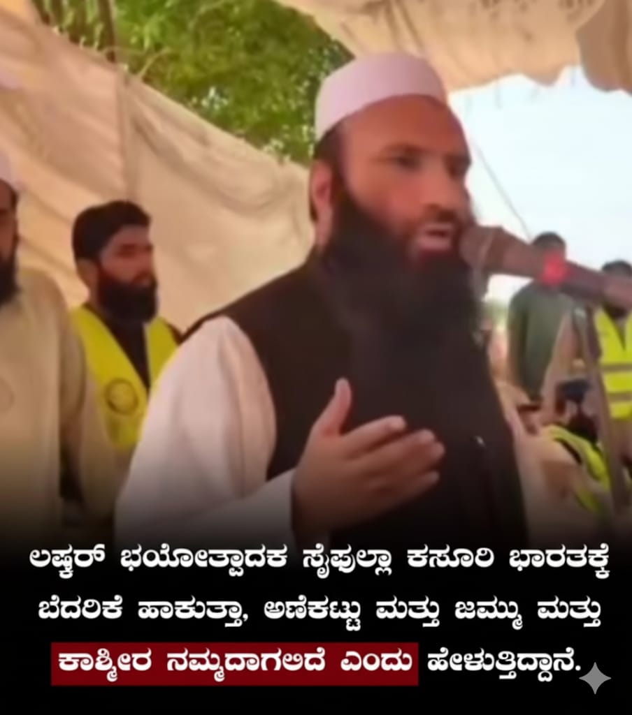 ಭಾರತಕ್ಕೆ ಸೈಫುಲ್ಲಾ ಕಸೂರಿಯ ಬಹಿರಂಗ ಬೆದರಿಕೆ: ಕಾಶ್ಮೀರ ನಮ್ಮದು, ಪರಿಣಾಮಗಳಿಗೆ ಸಿದ್ಧರಾಗಿ!