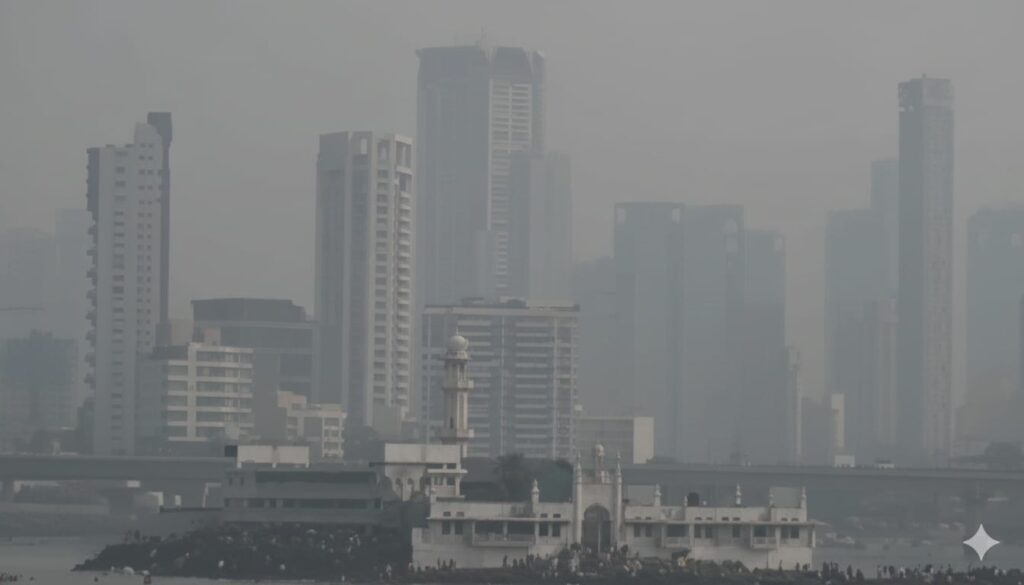 ದೀಪಾವಳಿ ಹಬ್ಬದ ನಂತರ ಮುಂಬೈ ನಗರದಲ್ಲಿ ವ್ಯಾಪಕ ಸ್ಮೋಗ್: ನಗರದಲ್ಲಿ ವಾಯು ಗುಣಮಟ್ಟ ಸೂಚಕ (AQI) ‘Poor’ ಮತ್ತು ‘Very Poor’ ಮಟ್ಟಕ್ಕೆ ತಲುಪಿದೆ. ಆರೋಗ್ಯದ ಎಚ್ಚರಿಕೆ, ಪ್ರದೇಶವಿಭಾಗದ AQI ಲೆಕ್ಕಾಚಾರ, ಮತ್ತು ಸರ್ಕಾರದ ಕ್ರಮಗಳ ಸಂಪೂರ್ಣ ಮಾಹಿತಿ ಇಲ್ಲಿ.