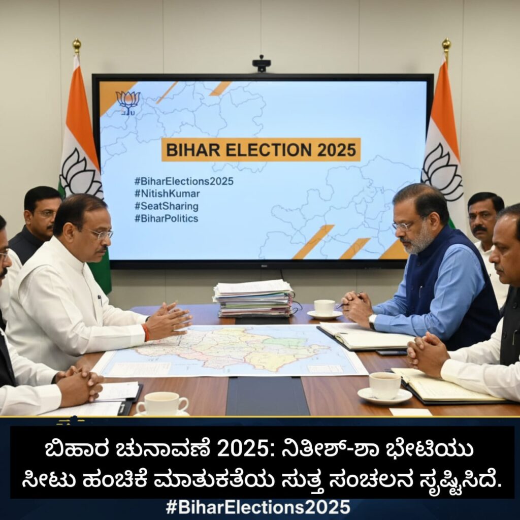 ಬಿಹಾರ19/09/2025: ಬಿಹಾರ ರಾಜಕೀಯದಲ್ಲಿ ಇದೀಗ ಭಾರೀ ಸಂಚಲನ ಮೂಡಿದೆ. 2025ರ ವಿಧಾನಸಭಾ ಚುನಾವಣೆ ಸಮೀಪಿಸುತ್ತಿದ್ದಂತೆಯೇ, ಮುಖ್ಯಮಂತ್ರಿ ನಿತೀಶ್ ಕುಮಾರ್ ಮತ್ತು ಕೇಂದ್ರ ಗೃಹ ಸಚಿವ ಅಮಿತ್ ಶಾ ಅವರ ನಡುವಿನ ಇತ್ತೀಚಿನ ಭೇಟಿ ರಾಜ್ಯ ರಾಜಕೀಯ ವಲಯದಲ್ಲಿ ತೀವ್ರ ಕುತೂಹಲ ಕೆರಳಿಸಿದೆ. ಈ ಭೇಟಿಯು ಮುಂಬರುವ ಚುನಾವಣೆಗೆ ಸಂಬಂಧಿಸಿದ ಸೀಟು ಹಂಚಿಕೆ ಮಾತುಕತೆಗಳ ಬಗ್ಗೆ ಹೊಸ ಚರ್ಚೆಯನ್ನು ಹುಟ್ಟುಹಾಕಿದ್ದು, ರಾಜಕೀಯ ಪಕ್ಷಗಳು ತಮ್ಮ ಮುಂದಿನ ನಡೆಯ ಬಗ್ಗೆ ತಲೆಕೆಡಿಸಿಕೊಂಡಿವೆ. ಬಿಹಾರದ ರಾಜಕೀಯ ಇತಿಹಾಸದಲ್ಲಿ ಸೀಟು ಹಂಚಿಕೆ ಯಾವಾಗಲೂ ನಿರ್ಣಾಯಕ ಪಾತ್ರ ವಹಿಸಿದೆ, ಮತ್ತು ಈ ಬಾರಿಯೂ ಅದು ಭವಿಷ್ಯದ ಮೈತ್ರಿಗಳನ್ನು ನಿರ್ಧರಿಸುವಲ್ಲಿ ಪ್ರಮುಖವಾಗಲಿದೆ.