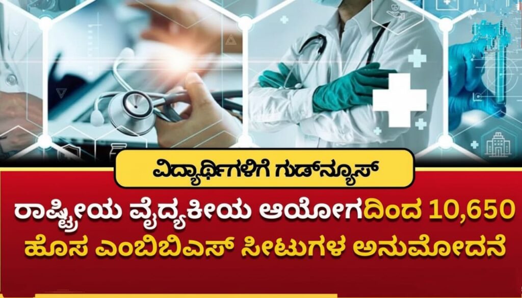 • NMC Approves 10,650 New MBBS Seats | ವೈದ್ಯಕೀಯ ವಿದ್ಯಾರ್ಥಿಗಳಿಗೆ ಗುಡ್ ನ್ಯೂಸ್ – 41 ಹೊಸ ಮೆಡಿಕಲ್ ಕಾಲೇಜುಗಳ ಸೇರ್ಪಡೆ